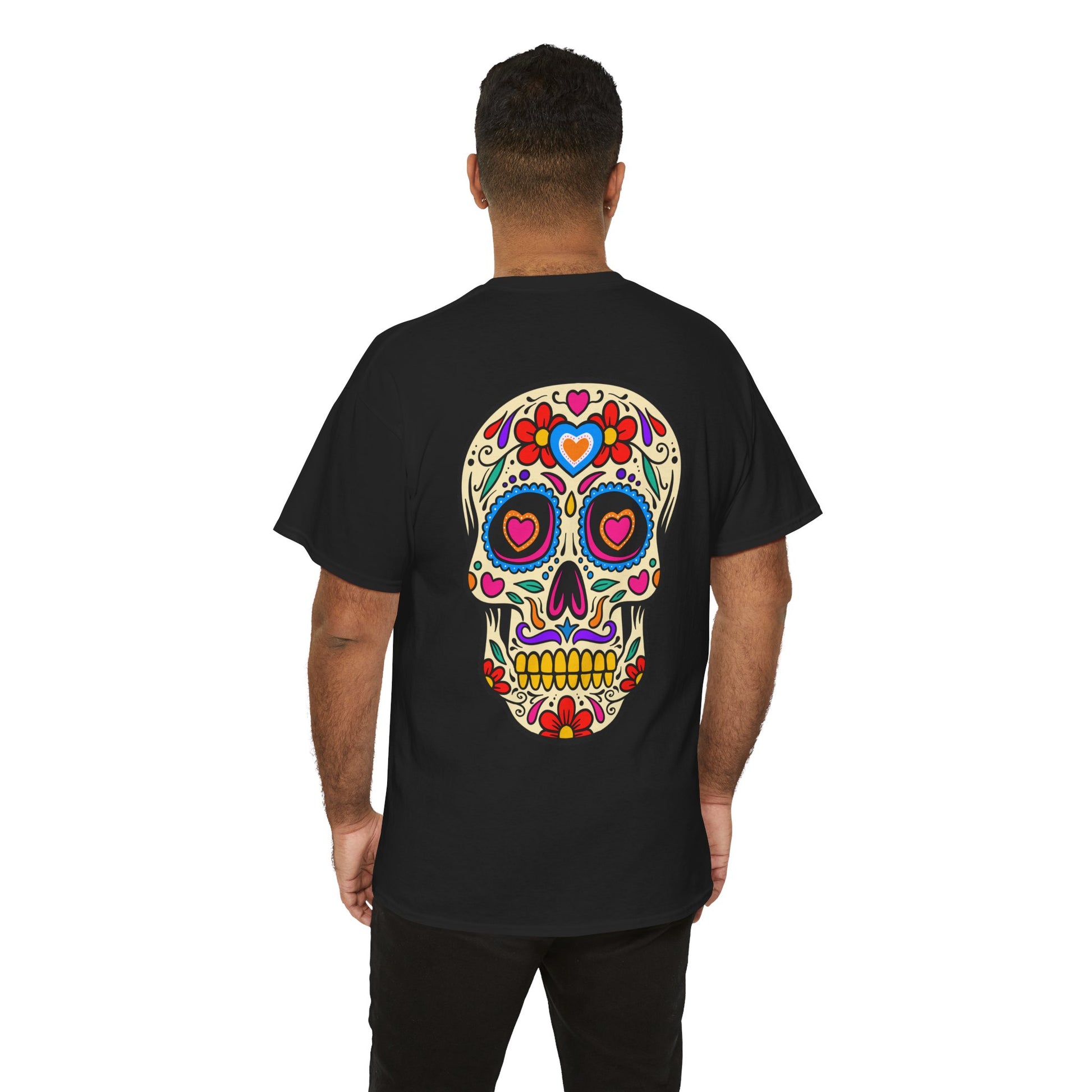 Vibrant Sugar Skull Tee - Unisex Heavy Cotton Shirt for Fiesta, Día de los Muertos, Everyday Wear, Party Celebrations, Gift Ideas